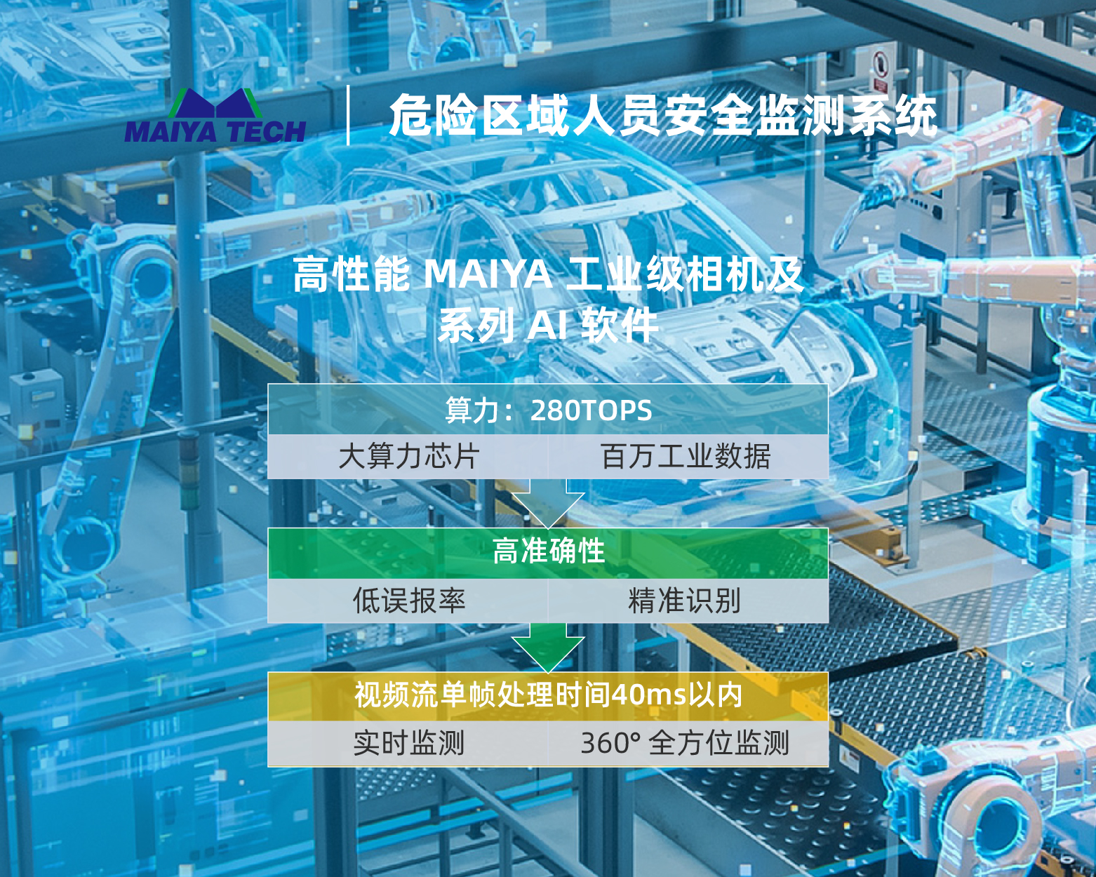Maiya's safety vision sensing products are engineered to enable multi-zone hierarchical safety identification, personnel presence/absence detection, anomaly monitoring, behavior analysis, and equipment response triggering in specific operational environments. These capabilities are designed to meet the evolving demands of modern and future smart manufacturing systems characterized by openness, flexibility, and intelligence.